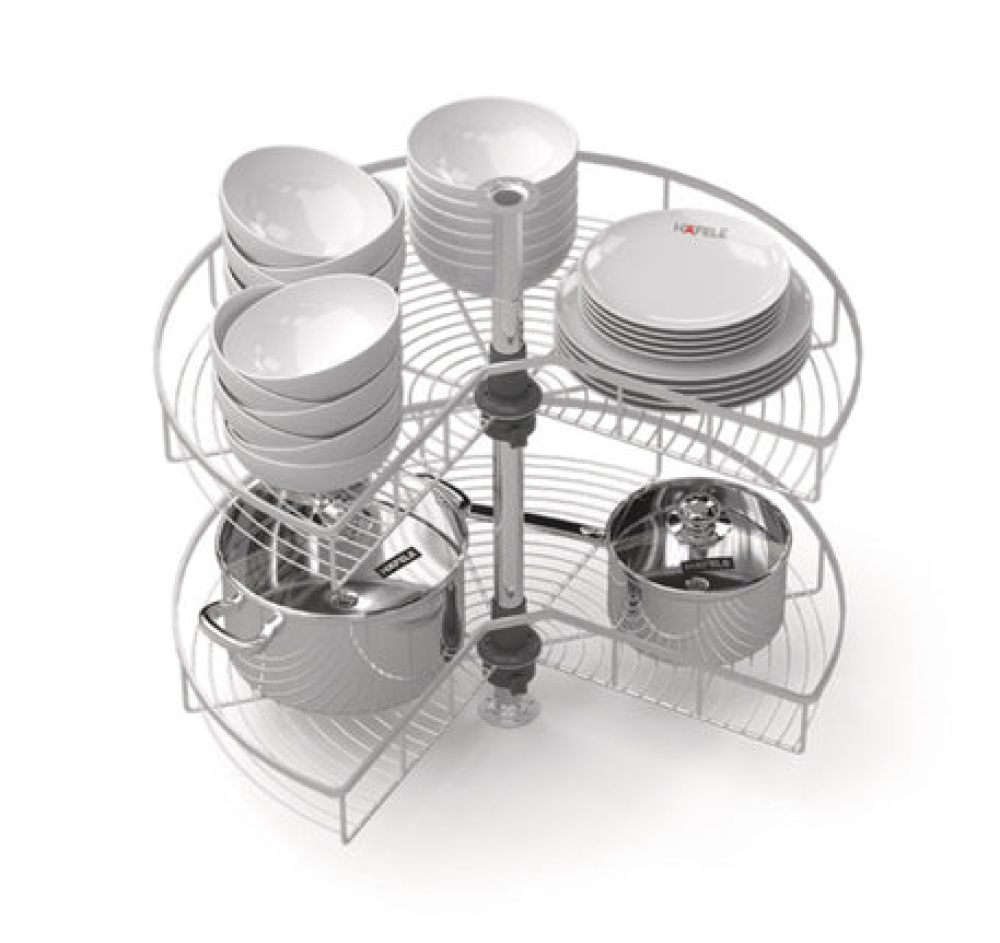 Trọn bộ gồm: Trục xoay, 2 rổ xoay 270 độ, 2 bộ khớp giữ rổ, bộ ốc lắp đặt |