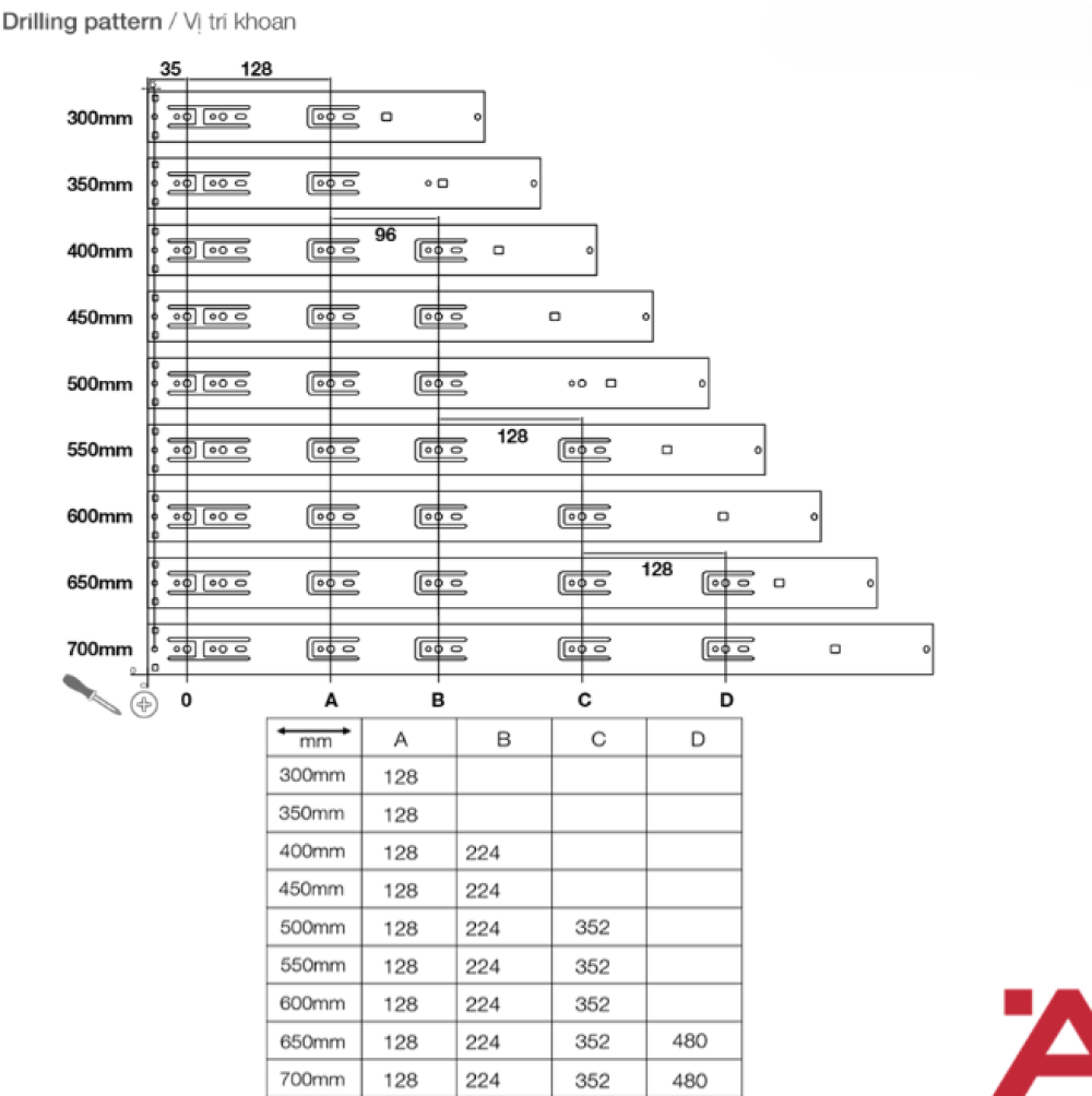 - Ray bi 3 tầng Hafele dành cho hộc tủ, ngăn kéo...