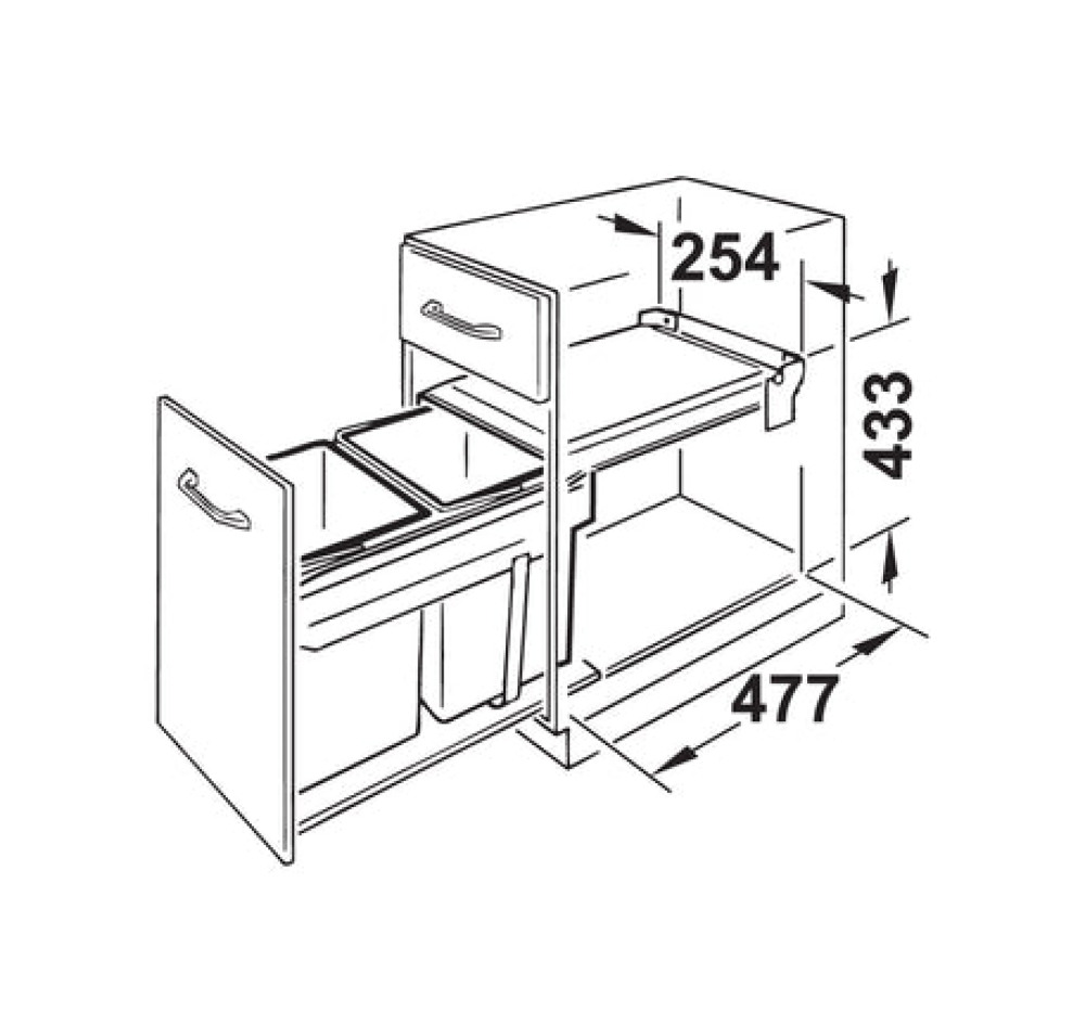 Thùng rác Hafele 2 ngăn, có ray kéo 502.72.761